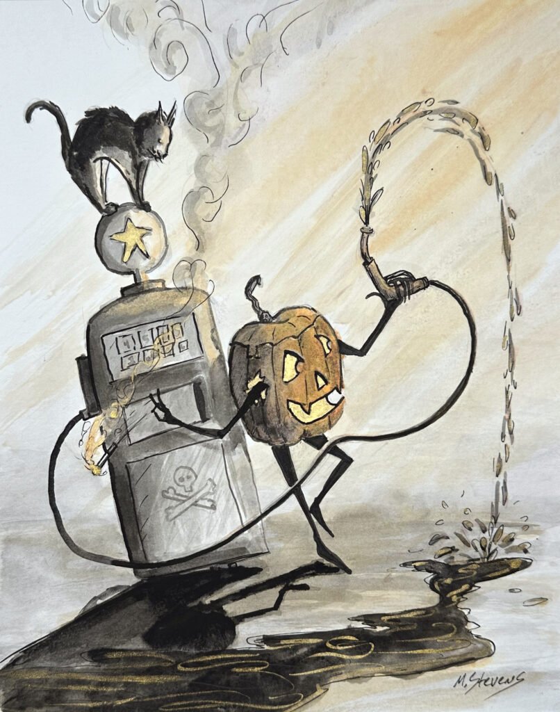 Kitty and Pumpkin are having a blast at the gas station… though no one told them not to smoke while pumping!